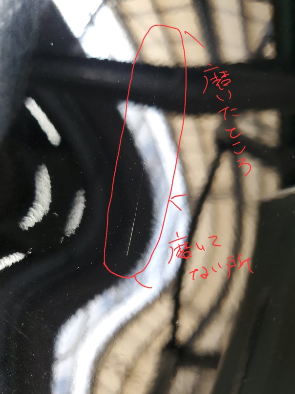 今回の傷はこちら。画像に示したように上半分だけ磨き処理を行っております。