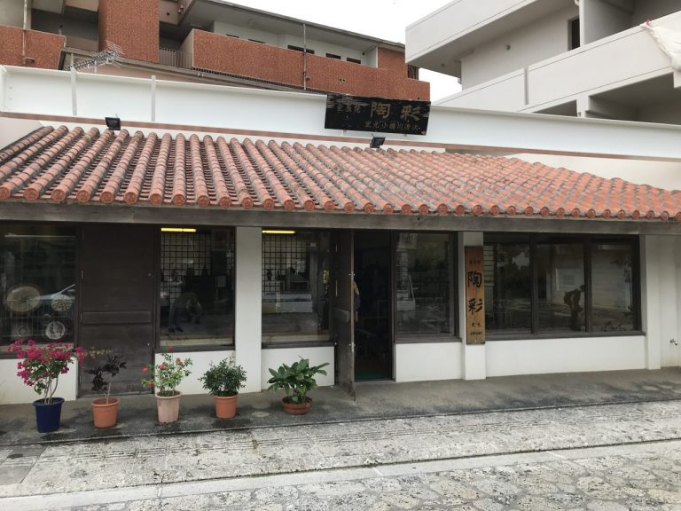 今回、店舗 壺屋焼窯元やちむんシーサー 陶彩にシャッターや、雨戸がないため台風対策として飛散防止フィルム2MILクリアーを施工致しました。