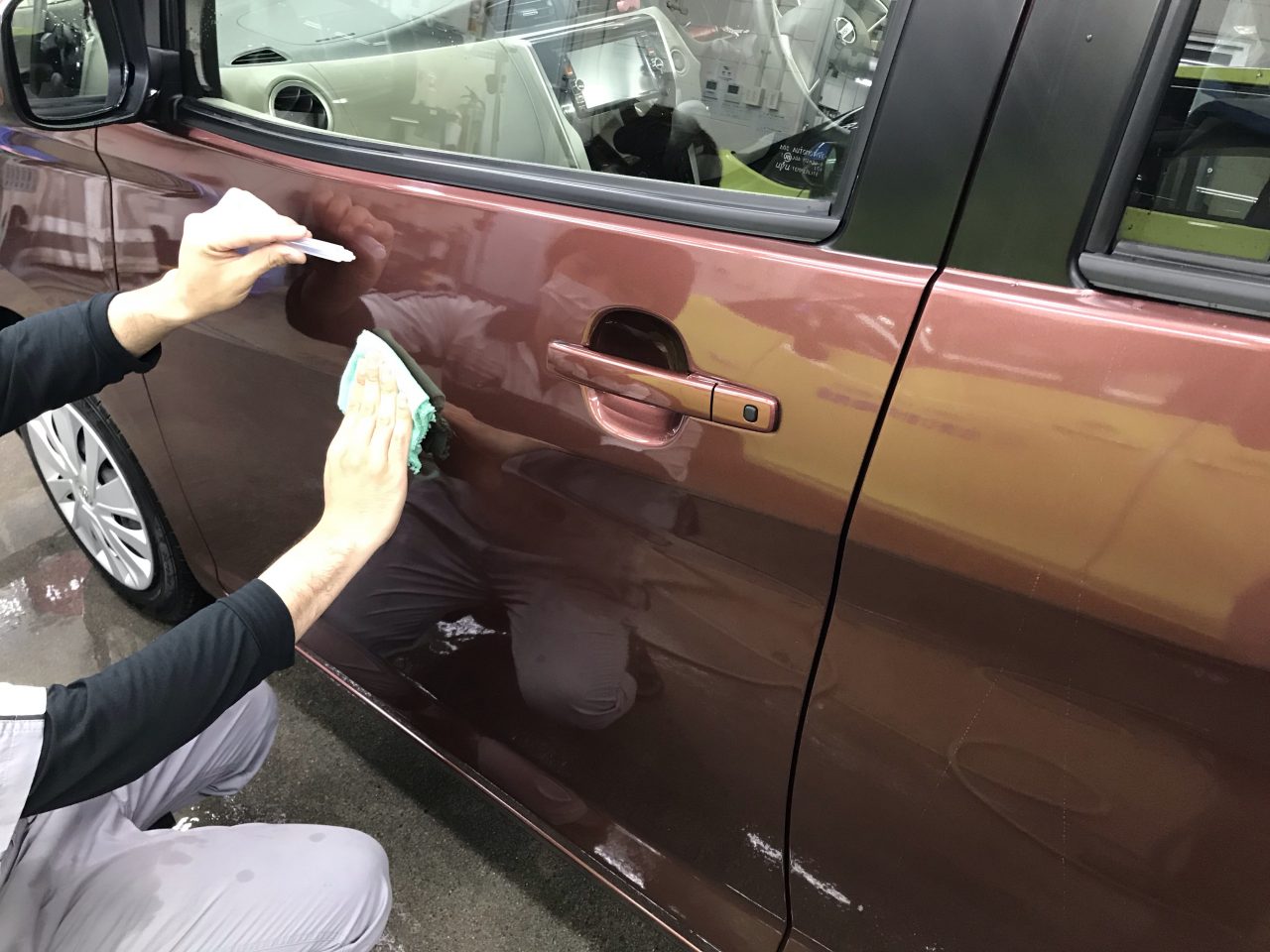 ザップスのメンテナンス施工内容は初回施工と同じようにボディーの鉄粉・洗車キズを下地処理でキレイにしていきますo(^_^)o