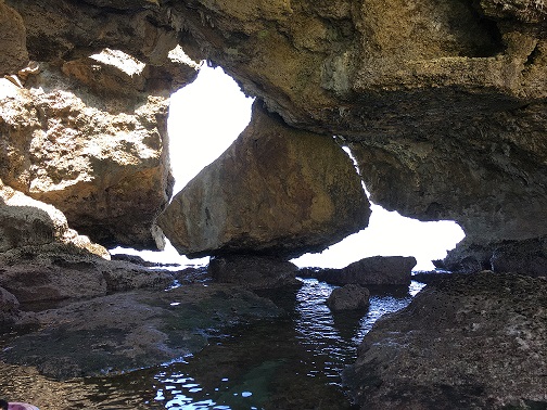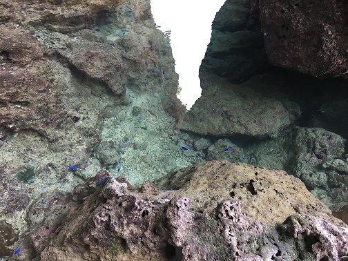 そこは大きな岩の下に洞窟のような不思議な空間があって、なんとも神秘的な海でした。