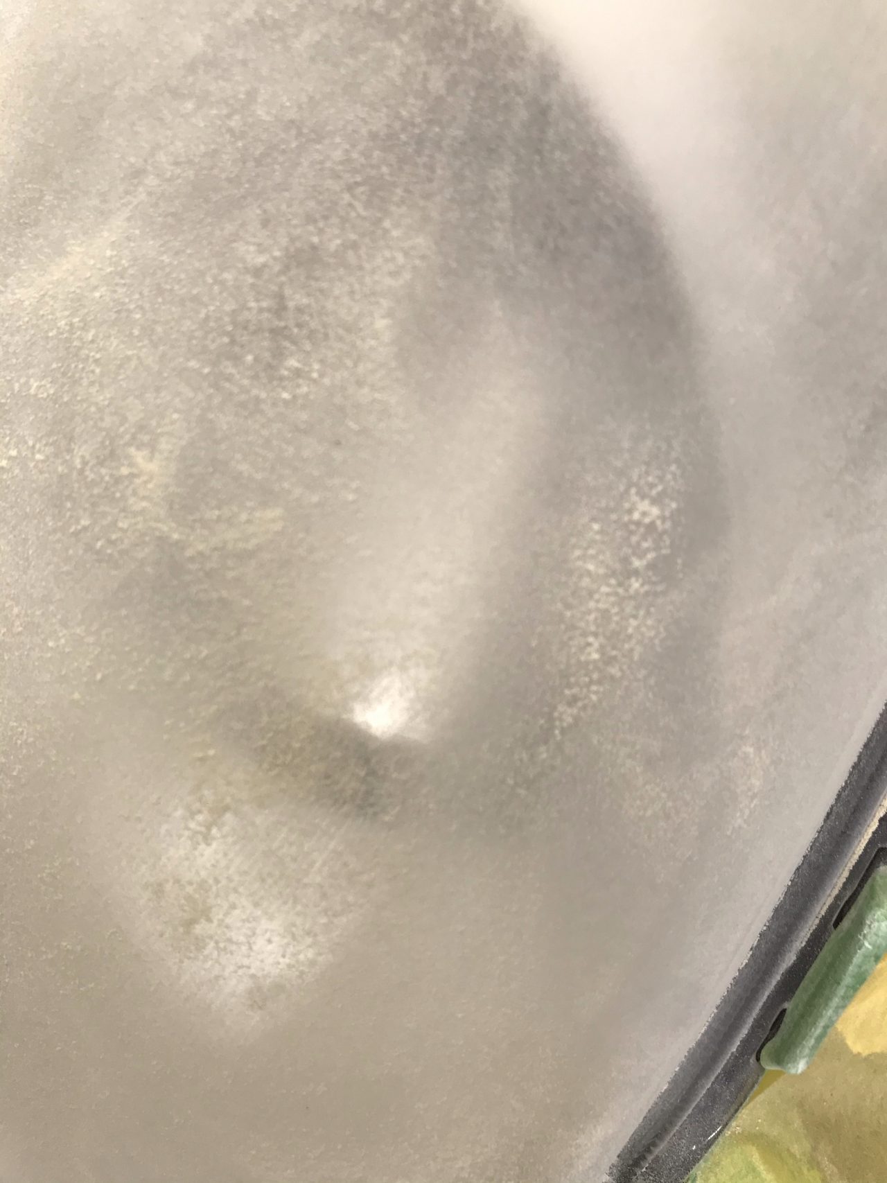 研磨すると、この様な黄色い粉がいっぱいです。これが連絡した表面塗膜です。