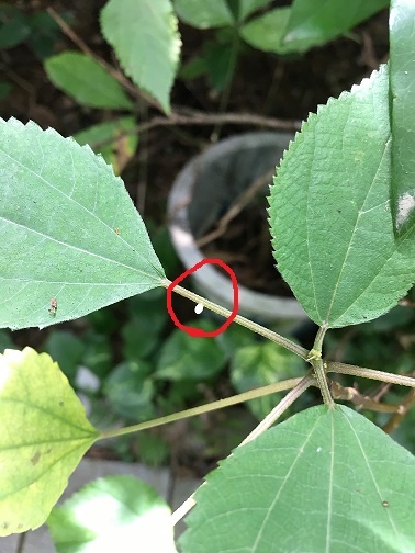 なんと卵を産み付けているではありませんか!!初めてチョウチョの産卵を見て子供たちと大興奮!(^^)!