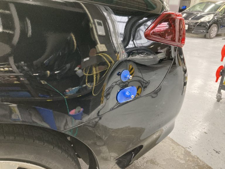 - ホンダフィットのリヤフェンダヘコミ補修 - 2023年7月28日