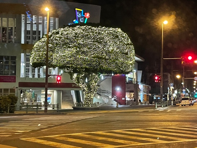 ミュージックタウン前のがじゅまるが光り輝いてるじゃないですか
