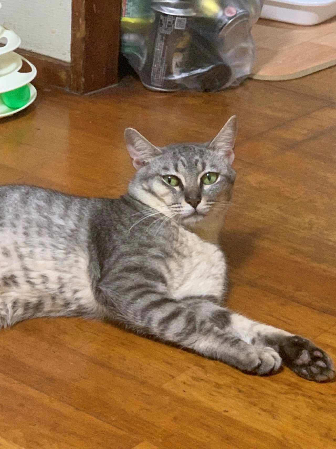拾ったときは怪我をしていてちゃんと歩けなかったので、少しでも元気になるようにご飯をたくさん上げたら