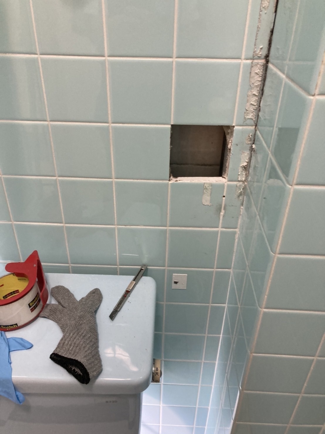 一番壁の薄い、トイレ側の壁を壊しながら探す事1時間・・・