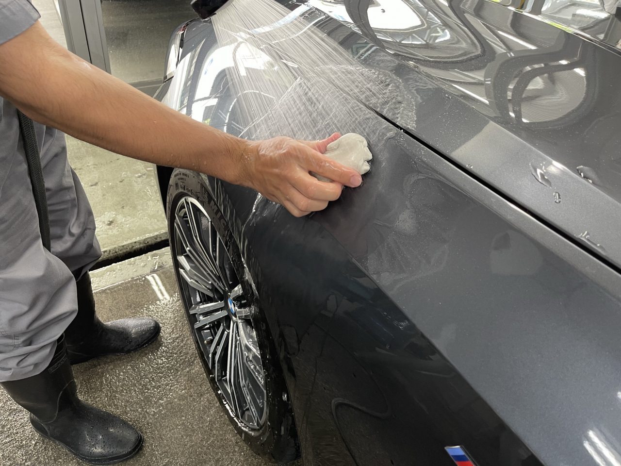 中央に白い粒が映っています電子顕微鏡で見るとはっきり付着しているのが確認できます