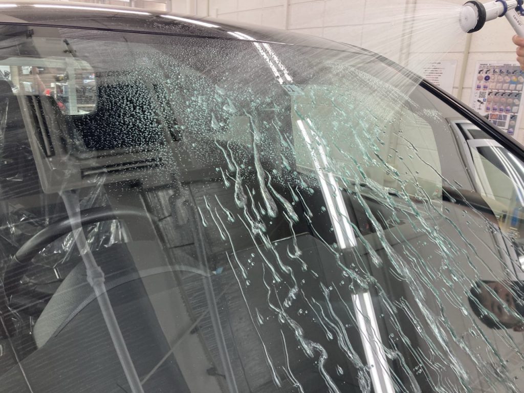 診断の為洗浄、撥水状態を確認完全な親水下地処理から入念に行います(^。^)