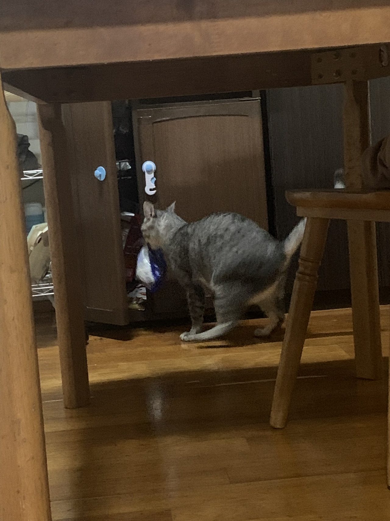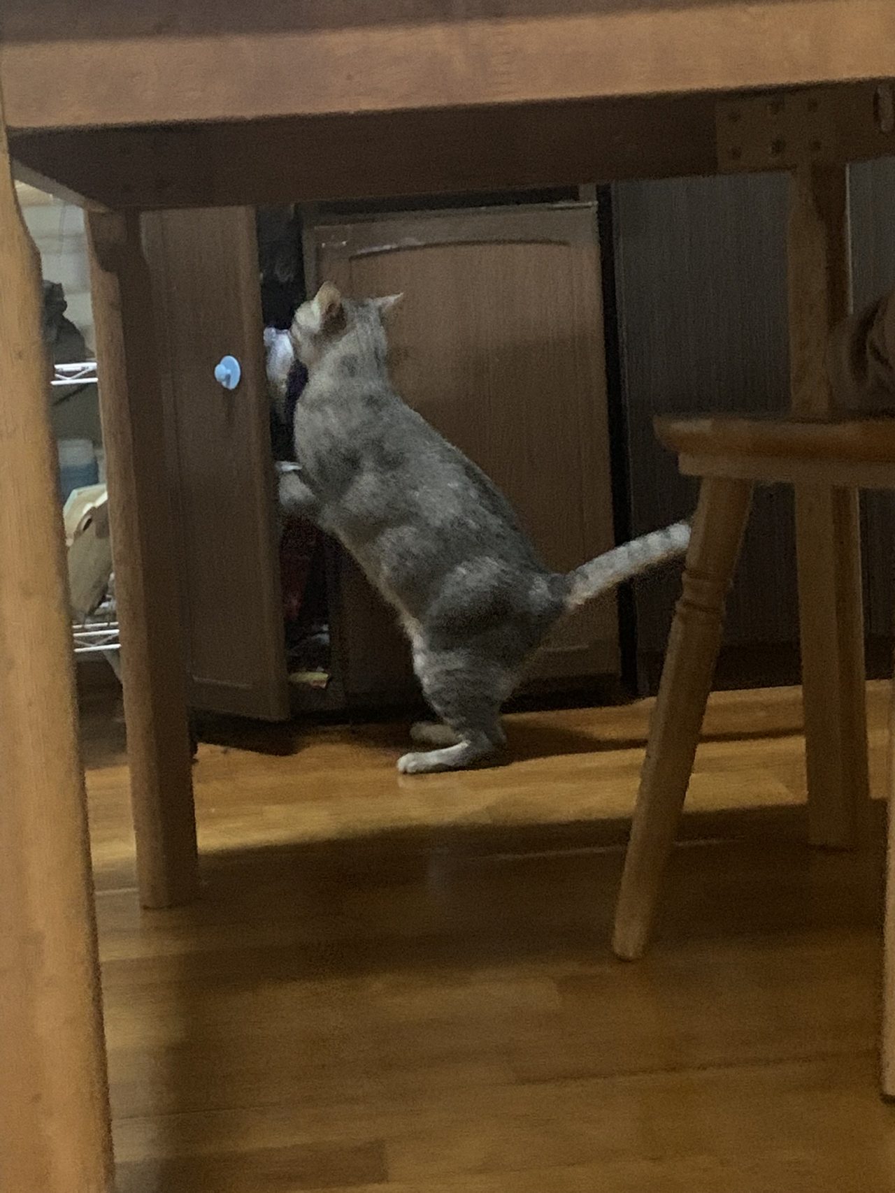 最近は自分で棚を開けてまでご飯を盗み食いしようとしてました!