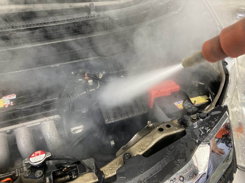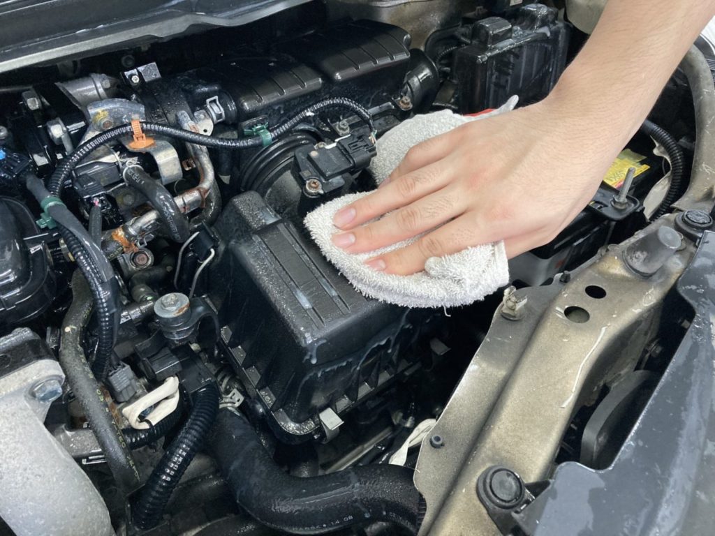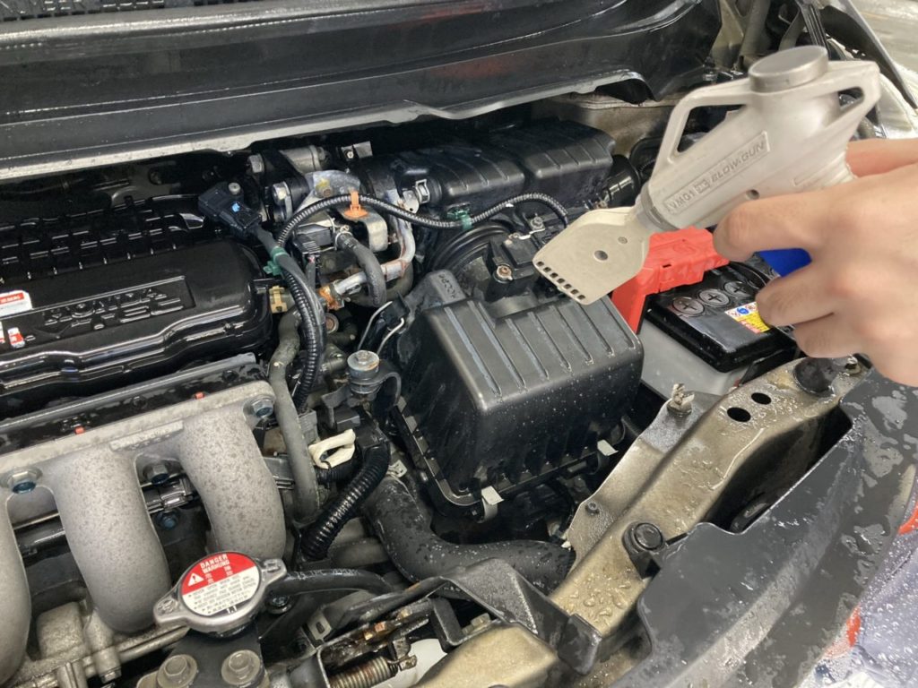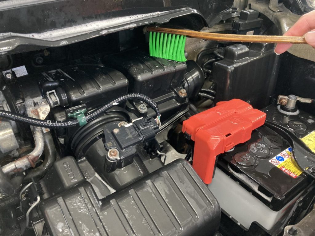 今回はメンテナンスコーティングで入庫のフリードのお客様より、エンジンルームの汚れも気になるので追加でクリーニングをお願いしたいとの事でした。