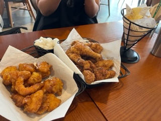 お店オリジナルチキンと、ハニーバターチキンを注文したのですが、外がパリパリ中はジューシーで