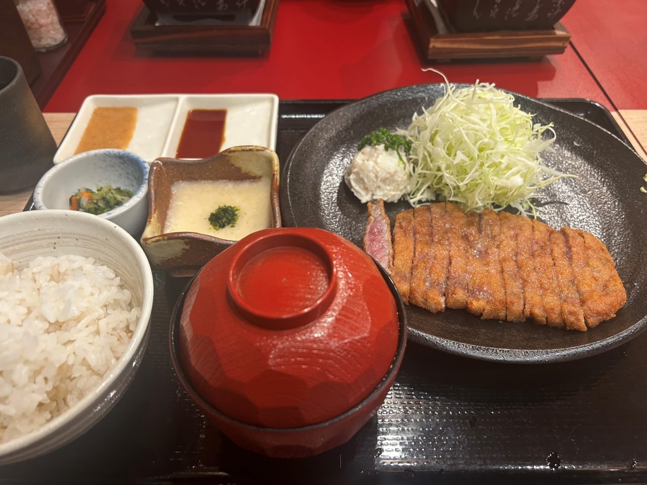 カツはレアで出てくるので自分の好みの焼き加減まで石盤で炙ってたべます^^