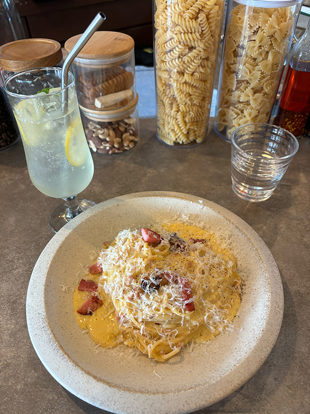 コショウ香る大人のカルボナーラパスタ&自家製レモンスカッシュ♡