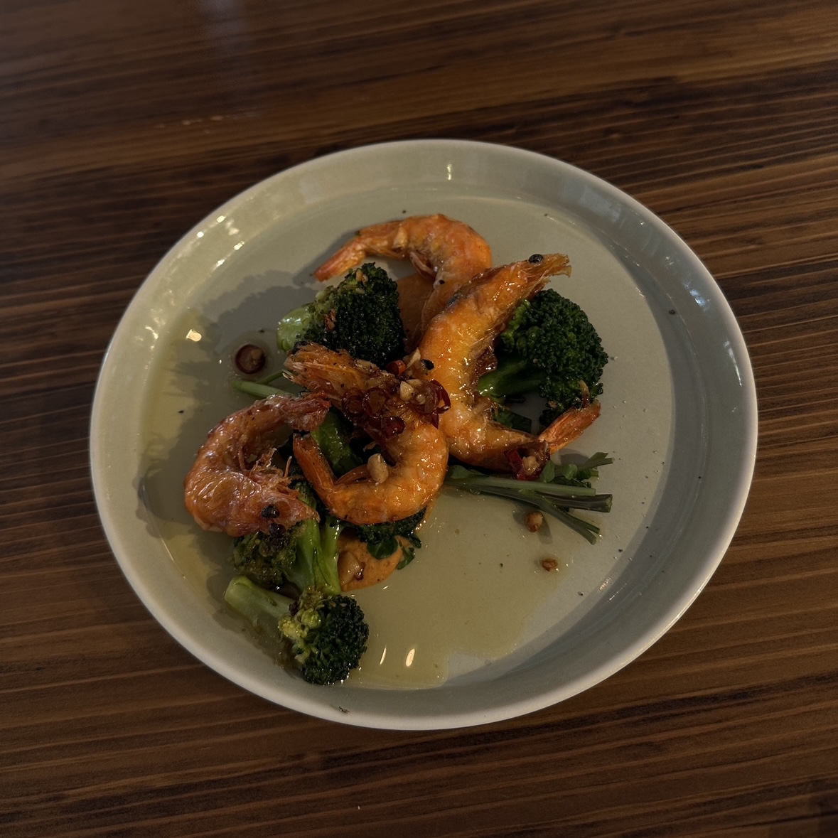 毎回注文する自家製フライドポテトと、今回は初めてガーリックシュリンプも食べてみました
