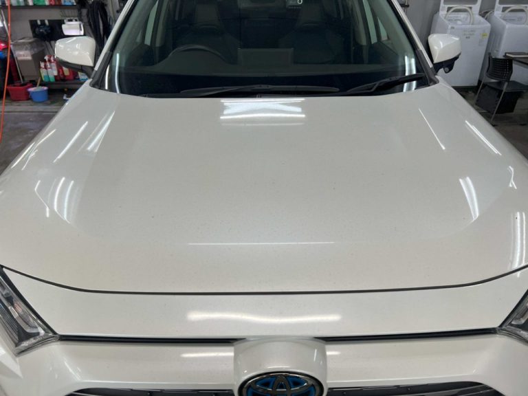 飛散物は車に付着し洗車では落ちない為、磨きを前提とし専用の溶剤やセラミック粘土を使用し落としていきます。