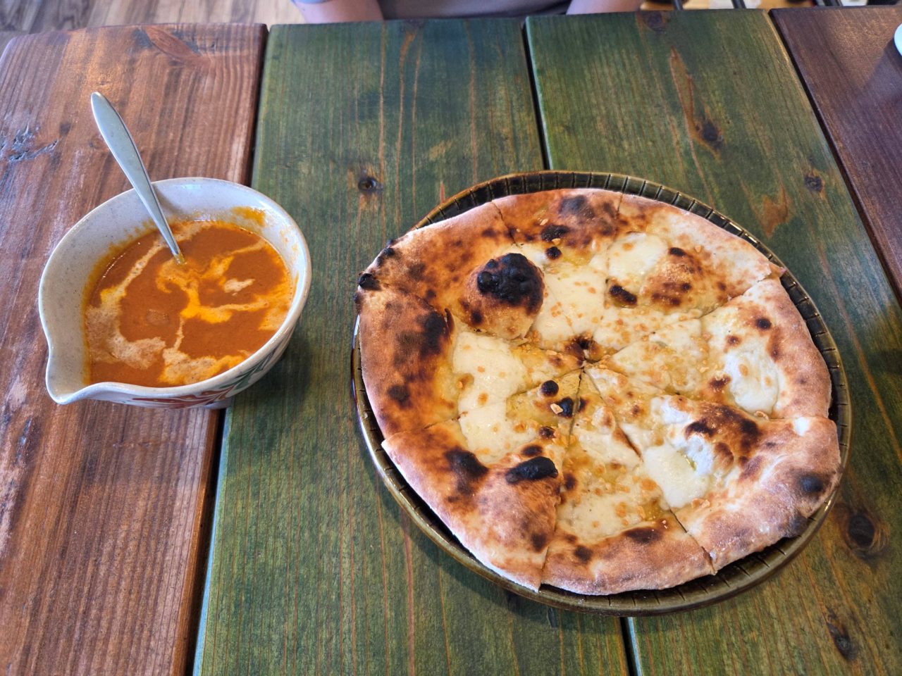 バターチキンカレー&ガーリックチーズピザとビスマルクを注文しました(^▽^)/