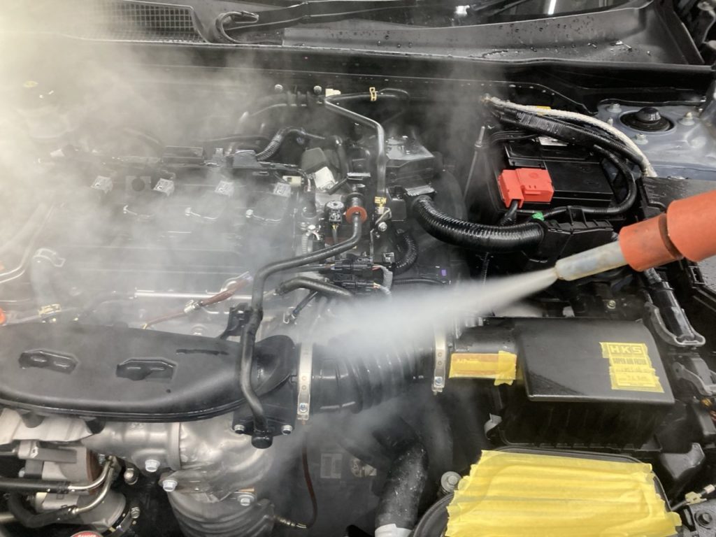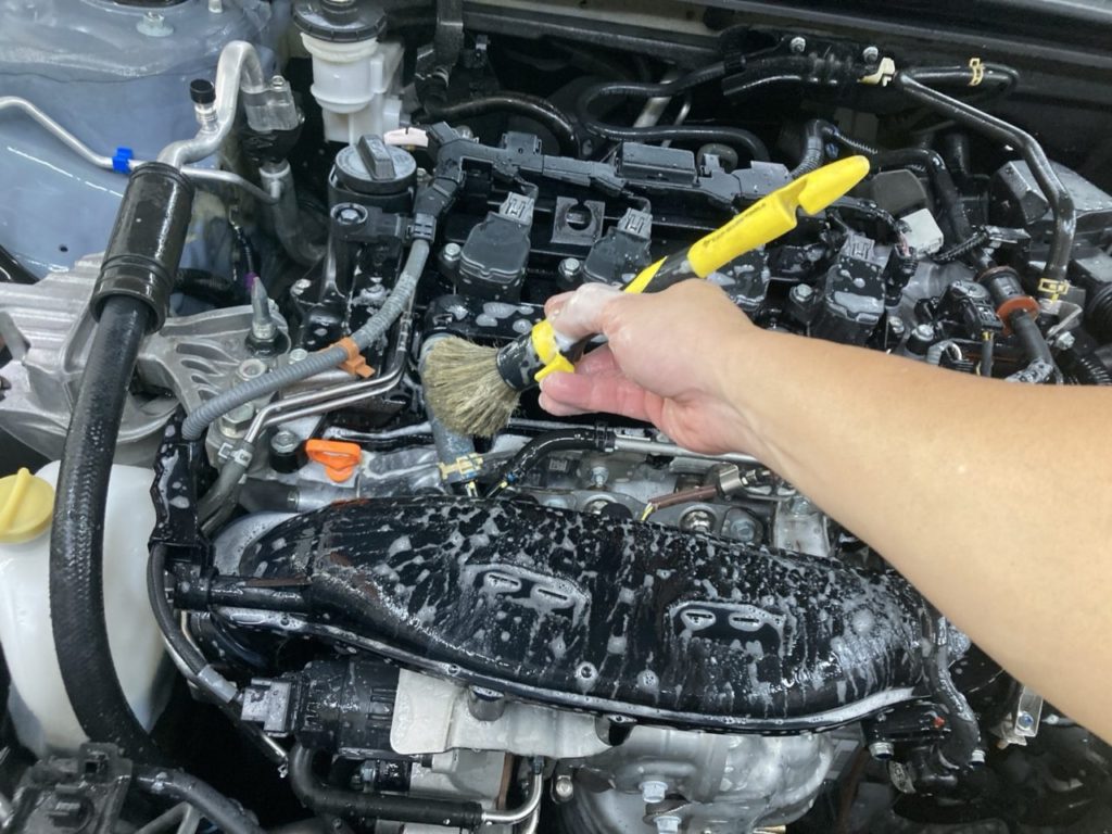 専用の液剤とディテーリングブラシで隅々まで除去して丁寧にブローして綺麗に艶出しします