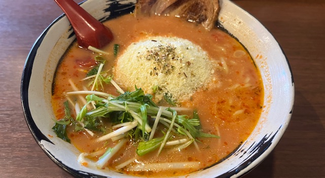 初めてのトマトラーメンでしたが、ピリ辛でチーズとのコクも合わさり、