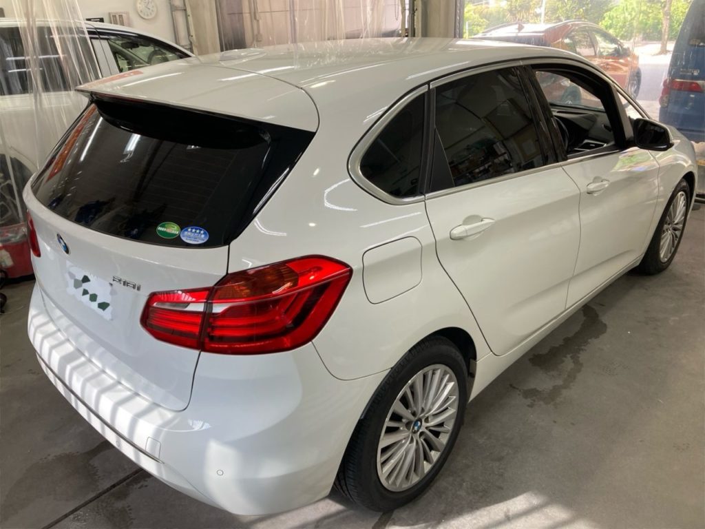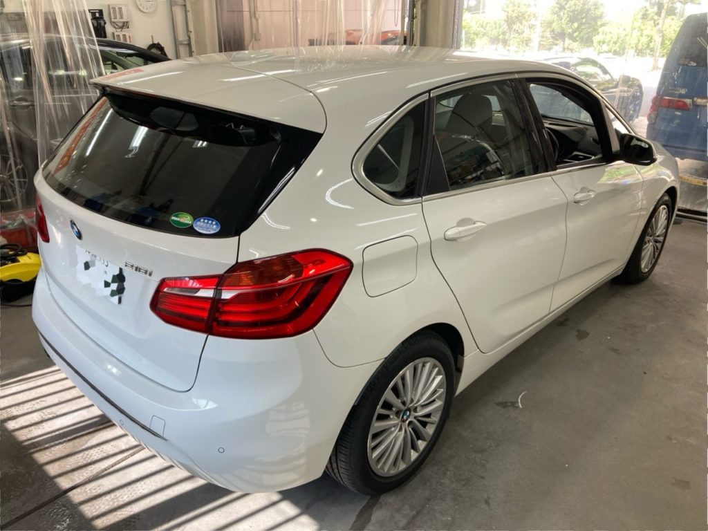 本日のお車はBMW2シリーズアクティブツアラーで施工箇所はプライバシー保護も含めリアガラス5面です。