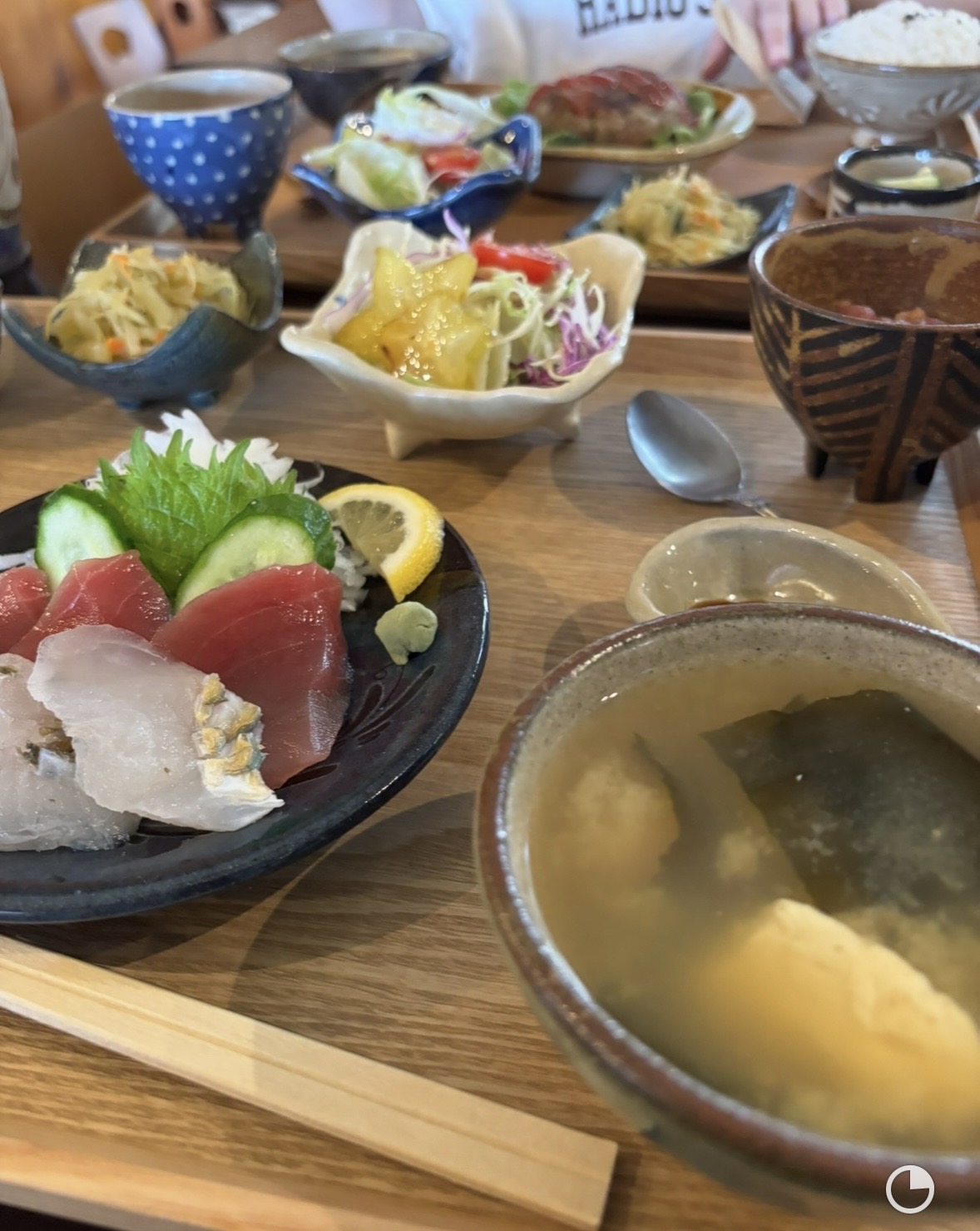 私は刺身定食、姉はハンバーグ定食を食べたんですが、すべて小ぶりサイズで、ちょうどいい感じにお腹が満たされました^^