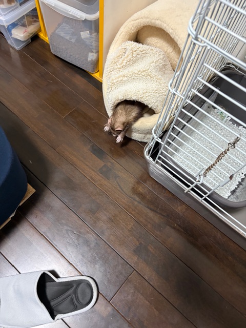 夕方前に家に帰宅すると、力の抜けたフェレットが部屋で待ってたので