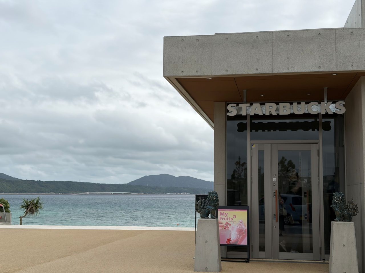 帰りに、今月オープンした海が目の前のスターバックスに行きました!