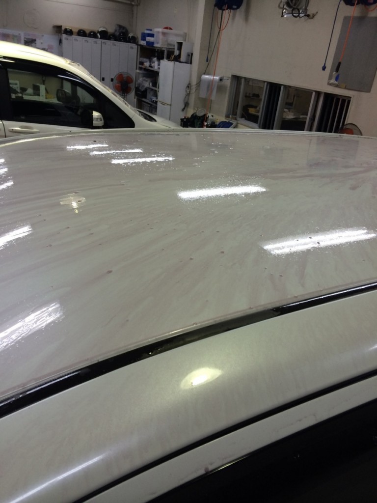 工事現場で車両に鉄錆が付着して緊急入院しました。まず落ちやすくする為に溶かす作業中