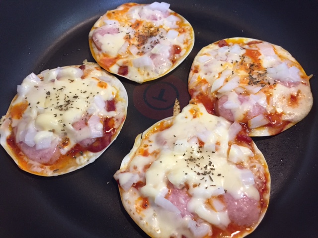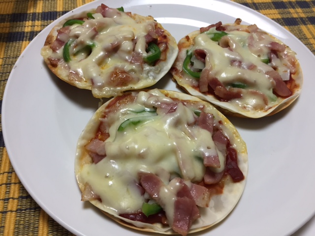 冷蔵庫にある材料をのっけて作ったのですが、作り方をネットで調べたらオーブントースター、オーブンレンジ