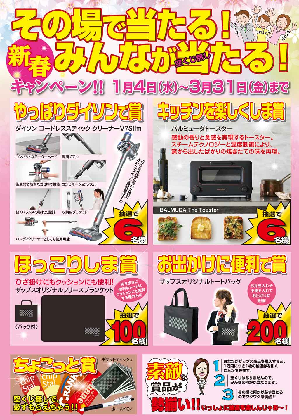 お客様がザップス商品を購入すると、1万円につき1枚の抽選券を引くことができます。