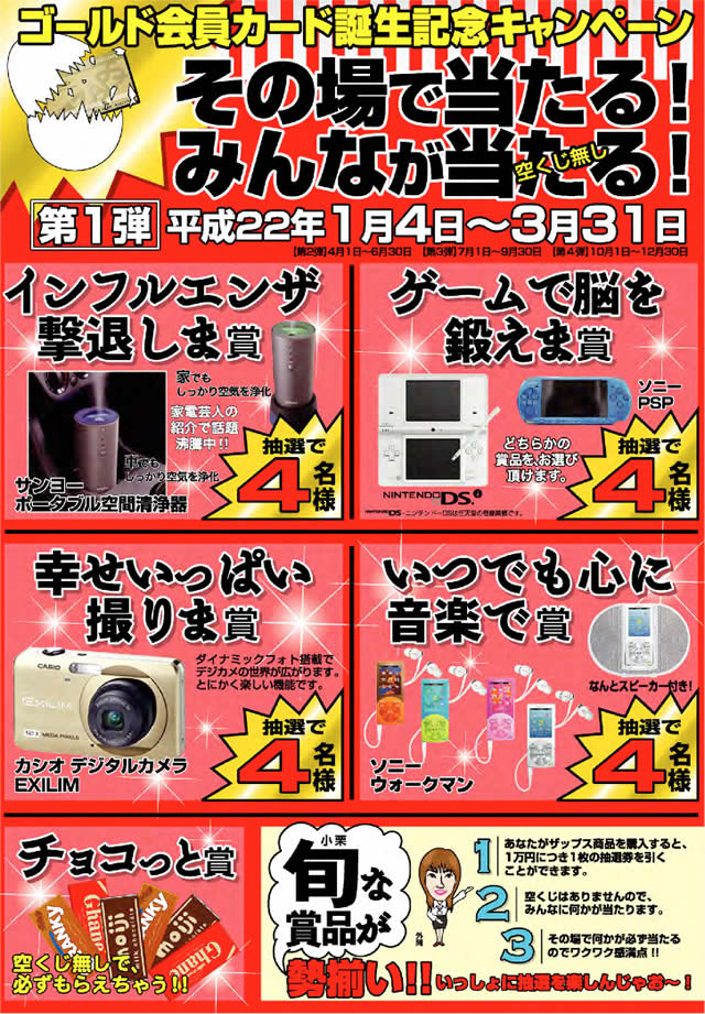 その場で当たる!みんなが当たる!空くじ無し!(有効期限は2010年4月1日から2010年6月30日まで)
