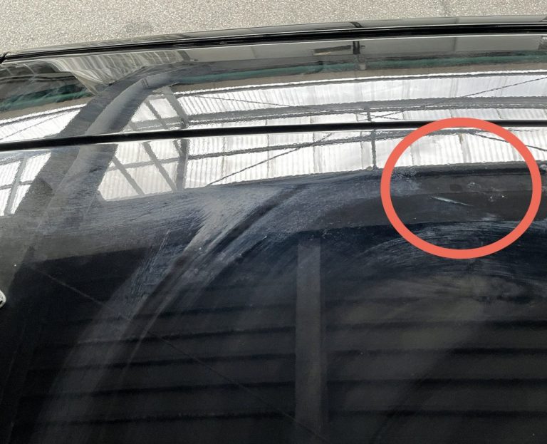ザップス会員様からご連絡があり、車のルーフに何か付いているので見てほしいとのお問い合わせがあり、確認したところ付着物(鳥フン、トンボやミツバチのフン、樹液、木の実などの可能性)で塗装にダメージが残っている状態でした(;_;)