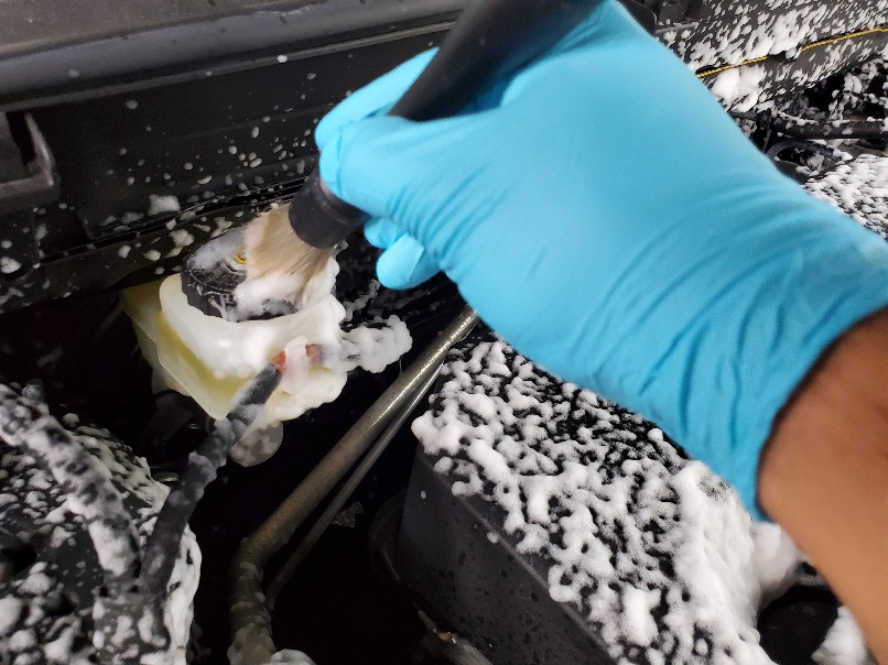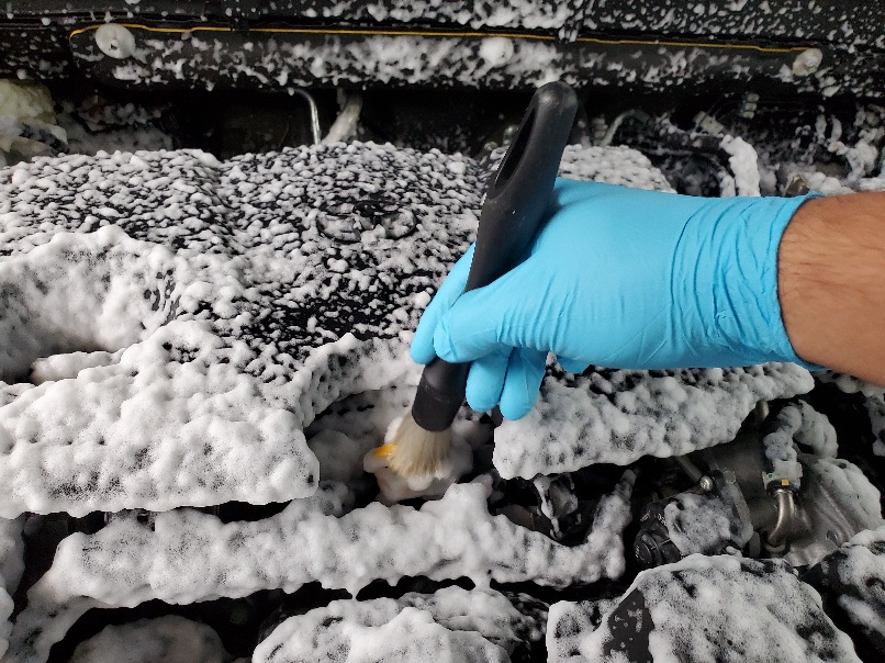 この作業はハイブリッド車はできない場合があります。その場合は高温のスチーマー等で安全に油汚れを落とします。