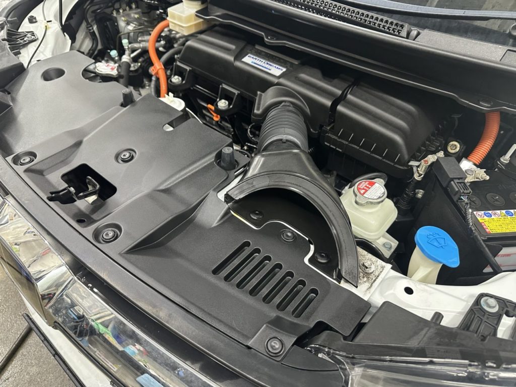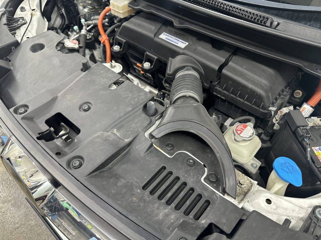 今回はメンテナンスコーティングで入庫のフリードのお客様より、エンジンルームの汚れも気になるので追加でクリーニングをお願いしたいとの事でした。