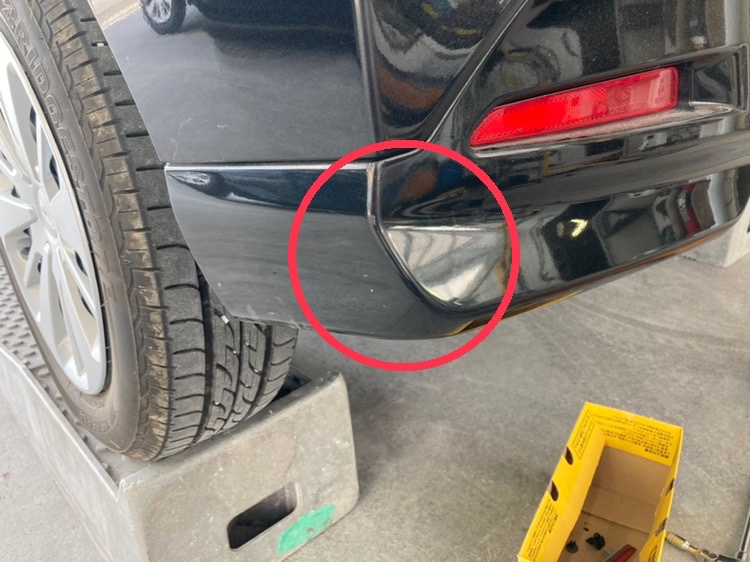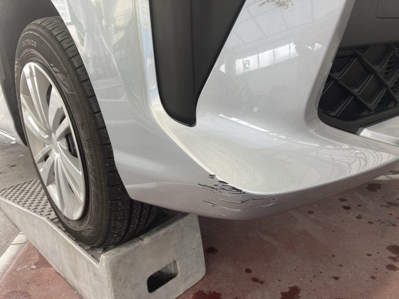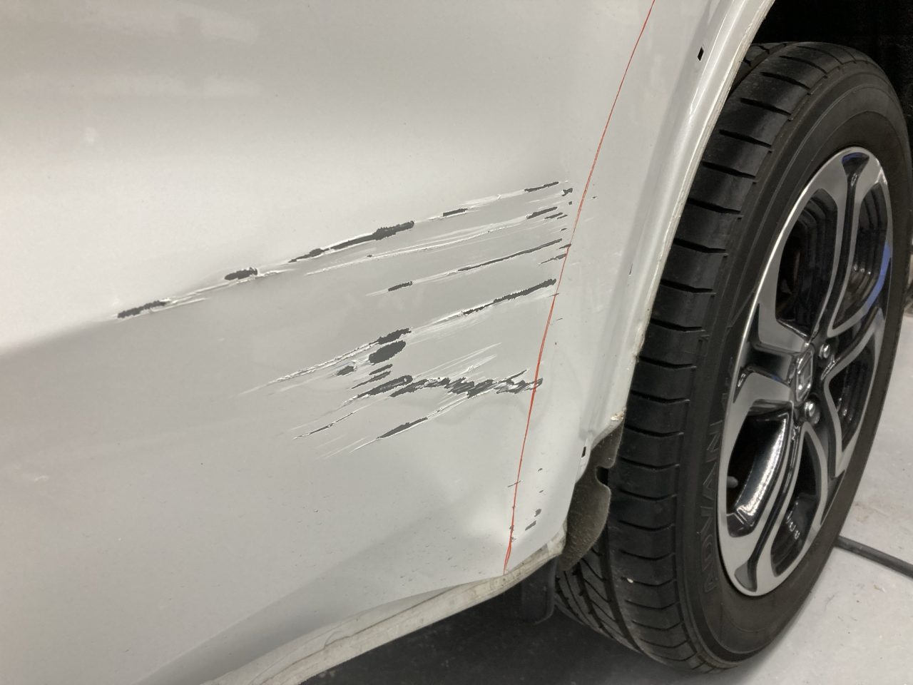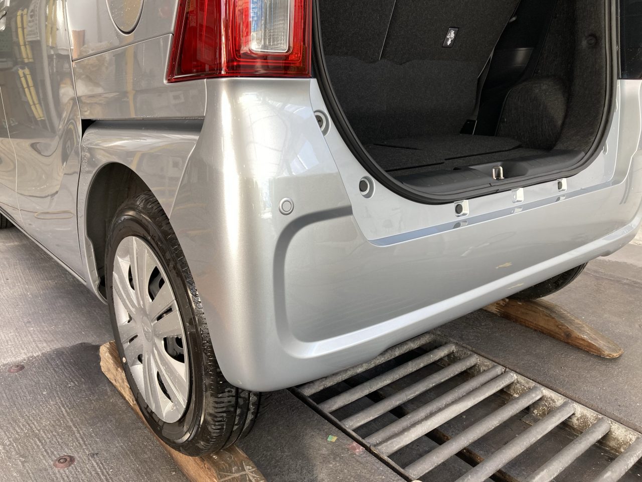 今回の入庫はホンダフィットのバックドア、リアバンパーヘコミ修理です。