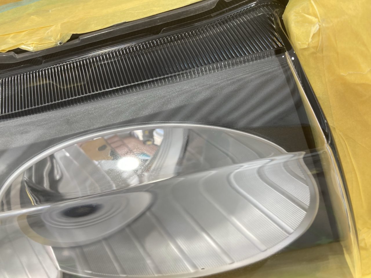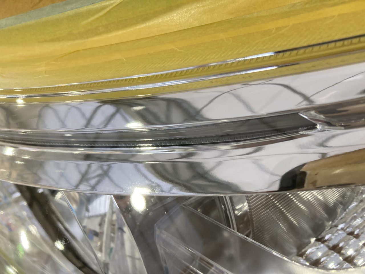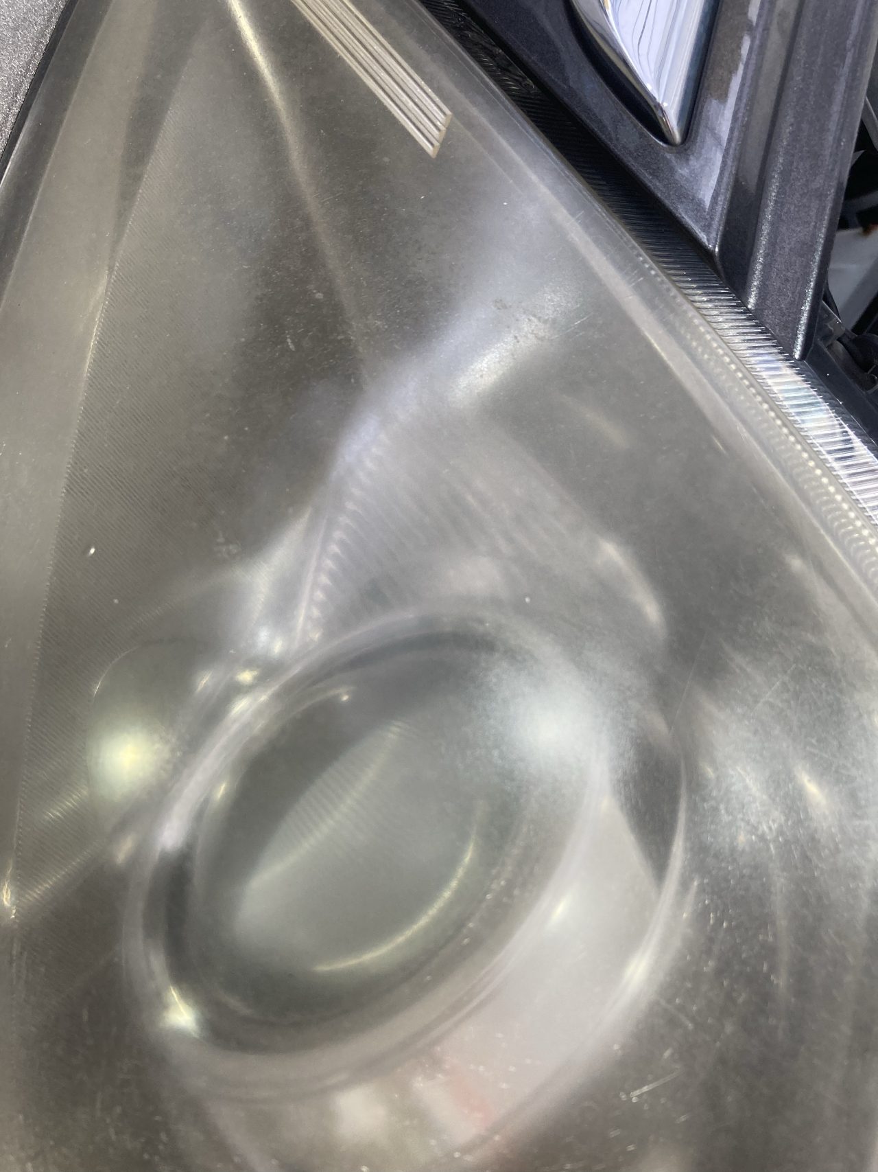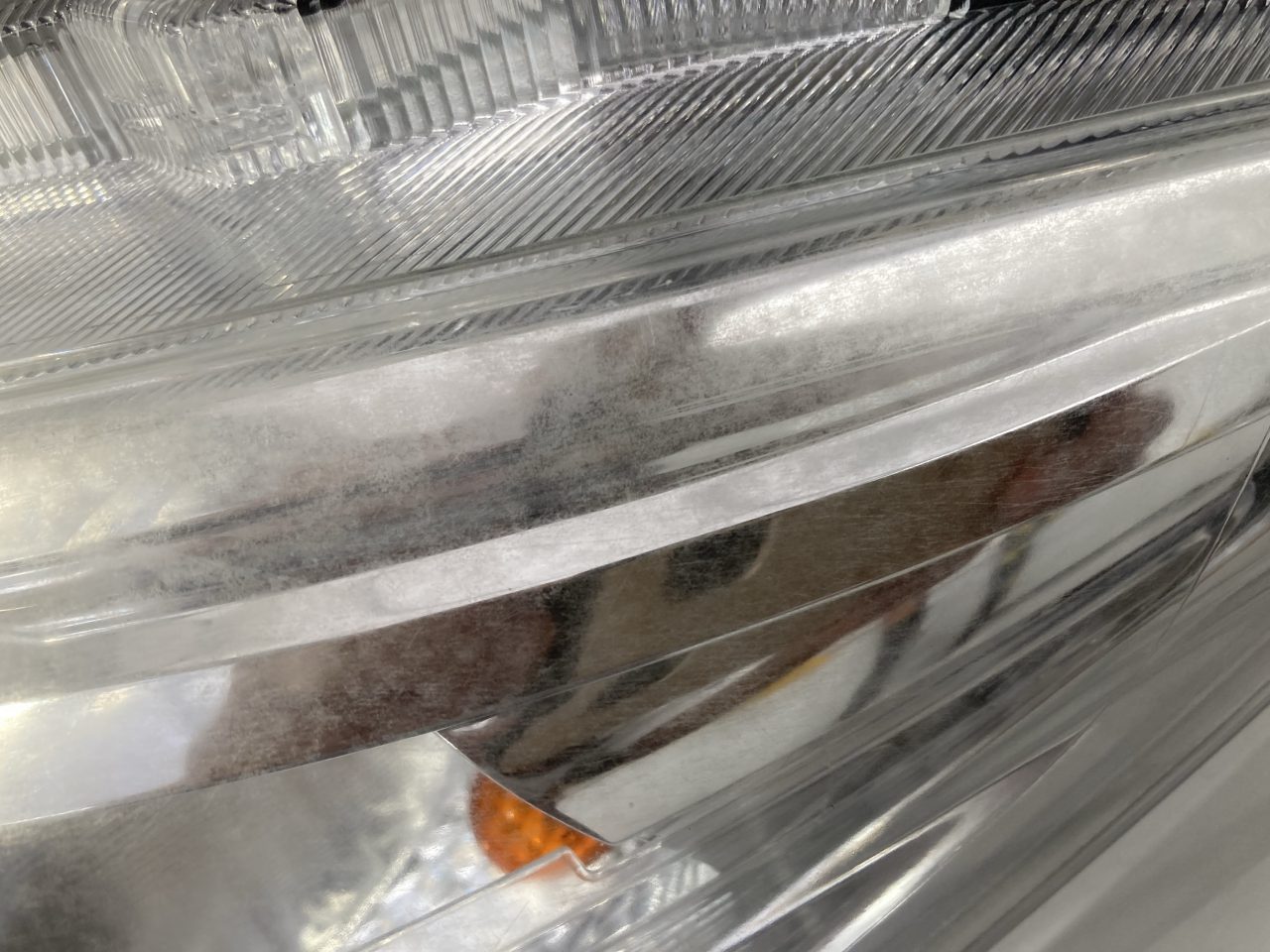 ヘッドライトの上部にしら曇り、黄変が見られます。
