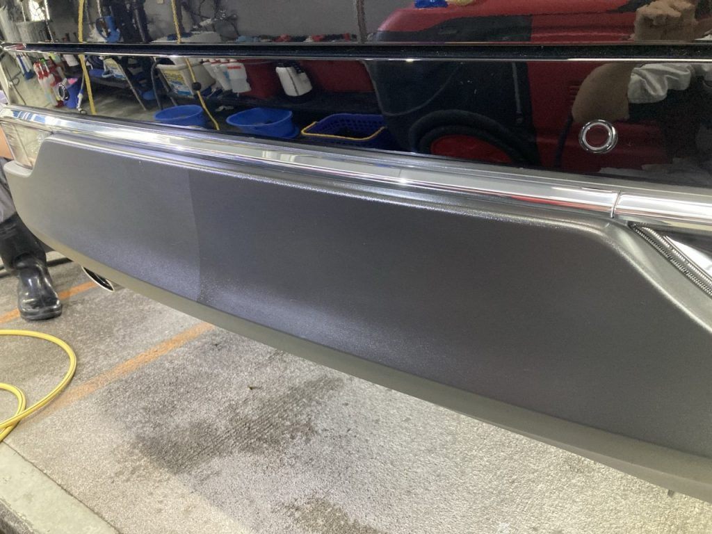 この状態ではコート剤が密着せずすぐ元に戻ってしまうので樹脂に溜まった汚れをクリーナーで洗浄後油分除去の脱脂乾燥後ムラにならないよう塗布します。