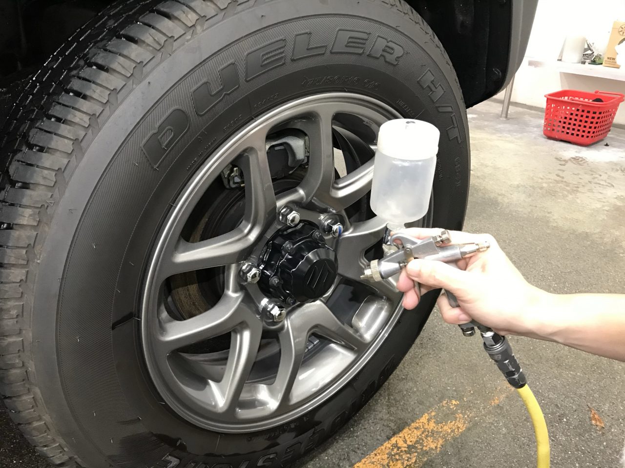 エアーブローして乾燥後専用のガンで細かい所まで吹きつけます