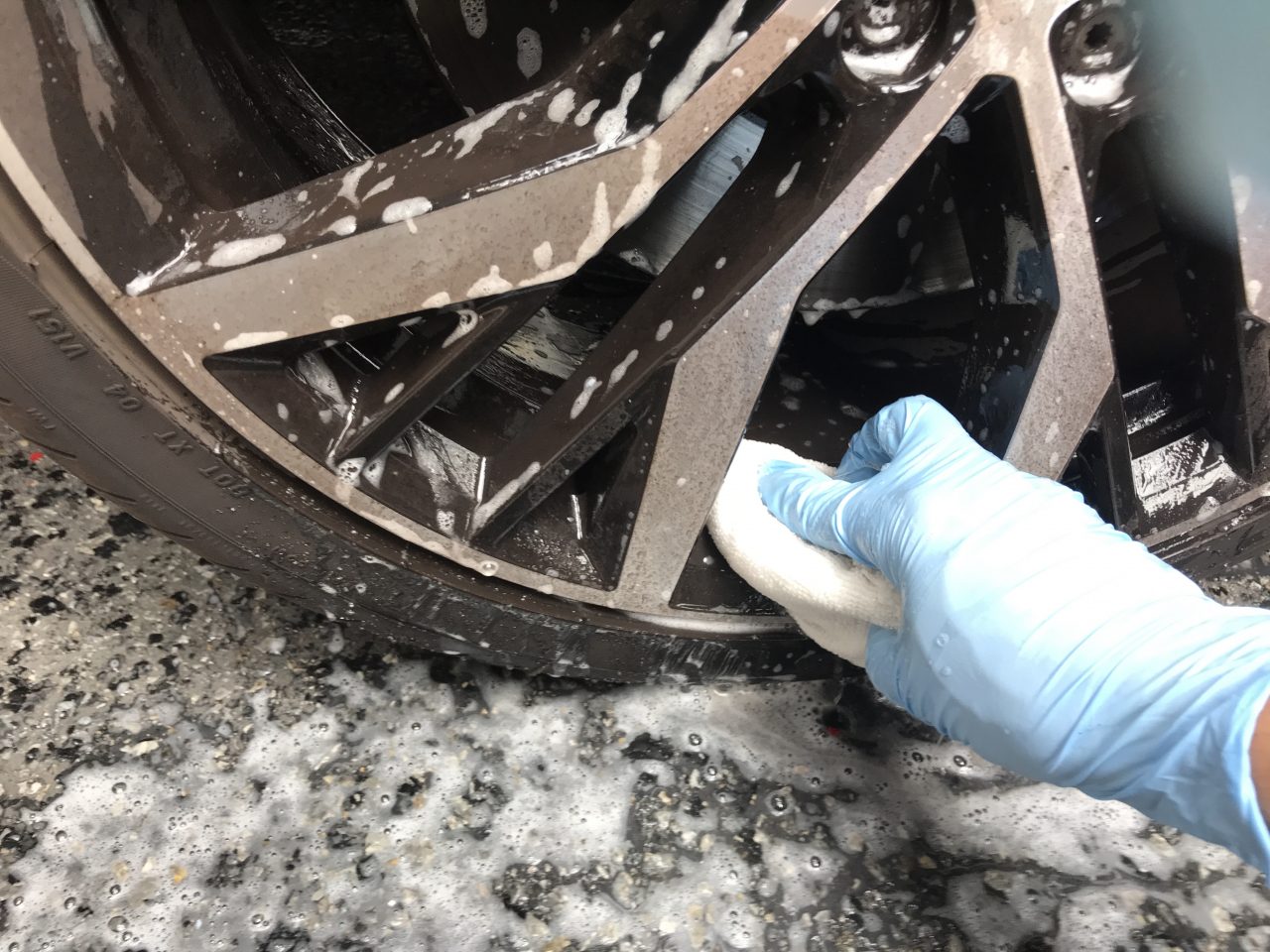 ホイールコーティングの際はまず手作業でキレイに洗浄を行います。