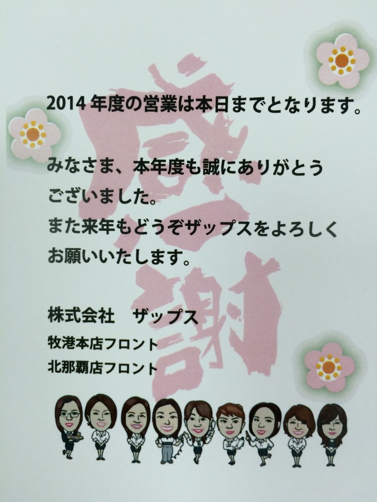 ザップスの営業は明日30日までですが、牧港店フロントからのブログは今日が最後