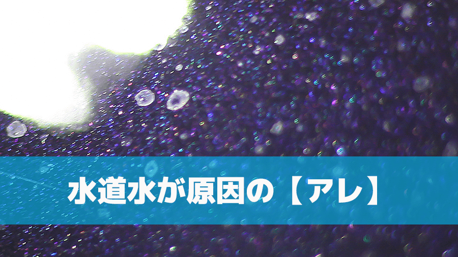 これは、水道水に含まれるカルキや石灰成分などが主で、水滴の状態から乾燥すると、この成分だけが後に残ります。