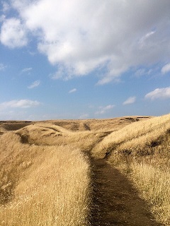 野焼きされた後で緑ではなくゴールドの景色になっていましたがだだっ広い景色に感無量・・・