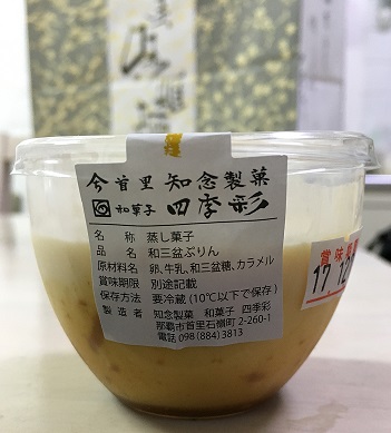 那覇市首里にあります知念製菓和菓子四季彩さんのなめらか和三盆ぷりん✨