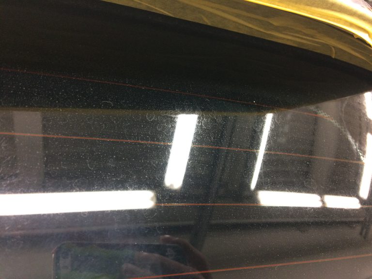 今回ご入庫頂きましたお車は年式の古いお車でガラスの水シミがとても酷い状態でした