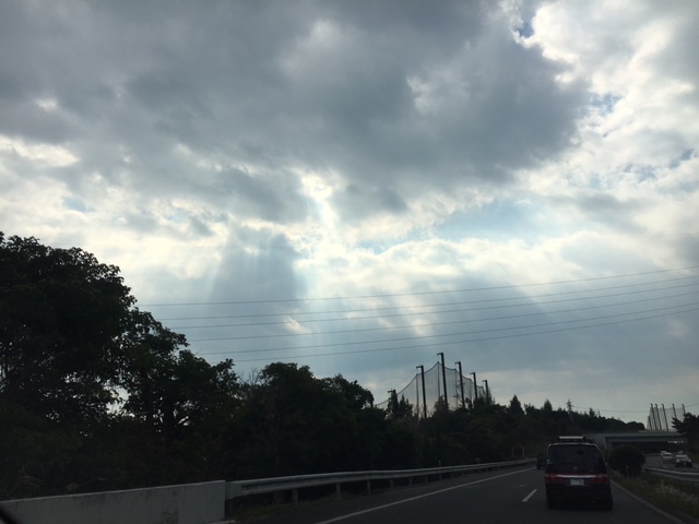 先日晴れた日に高速を走らせていたら、雲の間から太陽の光がとても