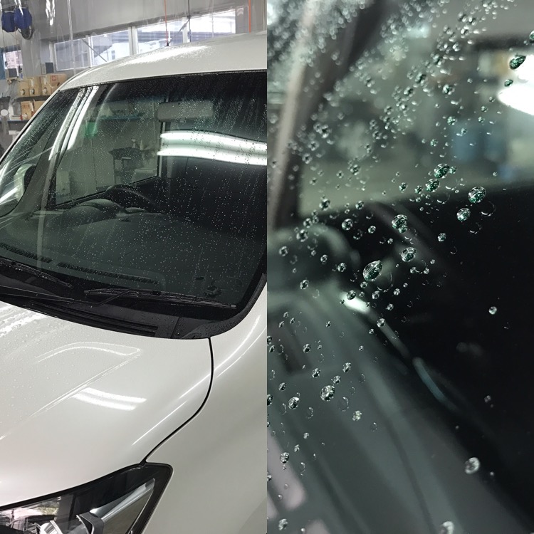 ぱっと見は撥水しているのですが走行しても水滴がガラスにとどまって、はけていかない為に視界がクリアではありません。