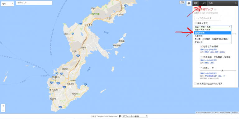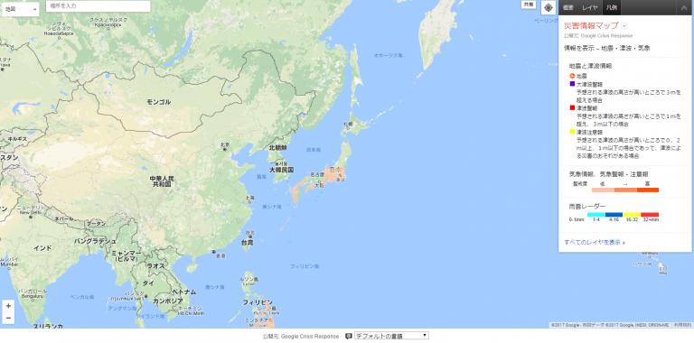 『災害情報マップ』と検索してクリックすると地図が表示されます