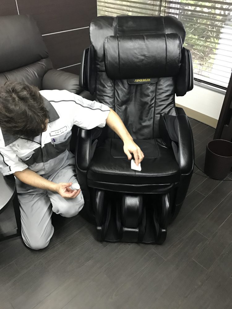 まずは手始めとしてショウルームのマッサージチェアーで施工しています