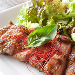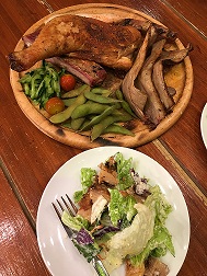 お腹が空いていたので迷わず燻製されたお肉の数々がのったボーンズ肉盛りとチキンシーザーサラダをチョイス!!!(燻製されたチキン・リブ・ベーコンなどなどがのっております♡)