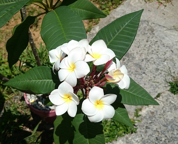 晴天のおかげか、我が家のプルメリアの花が咲き始めました🌸