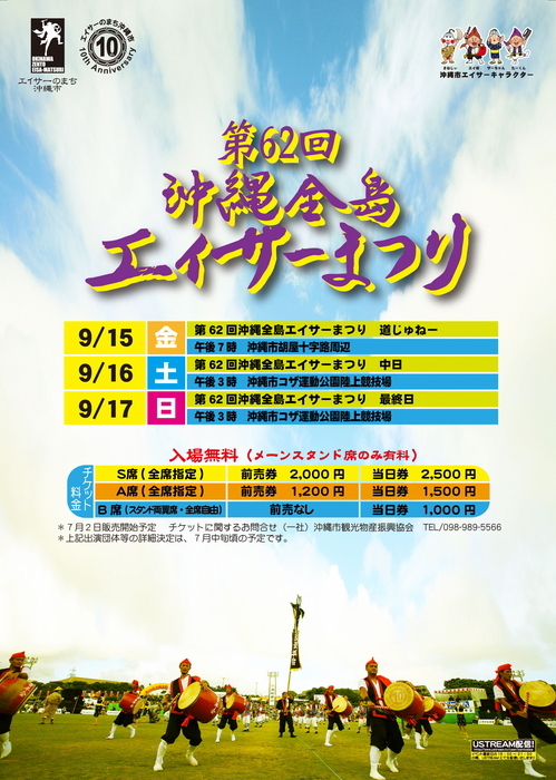 沖縄全島エイサーまつりは9月15日~17日の予定らしですよ